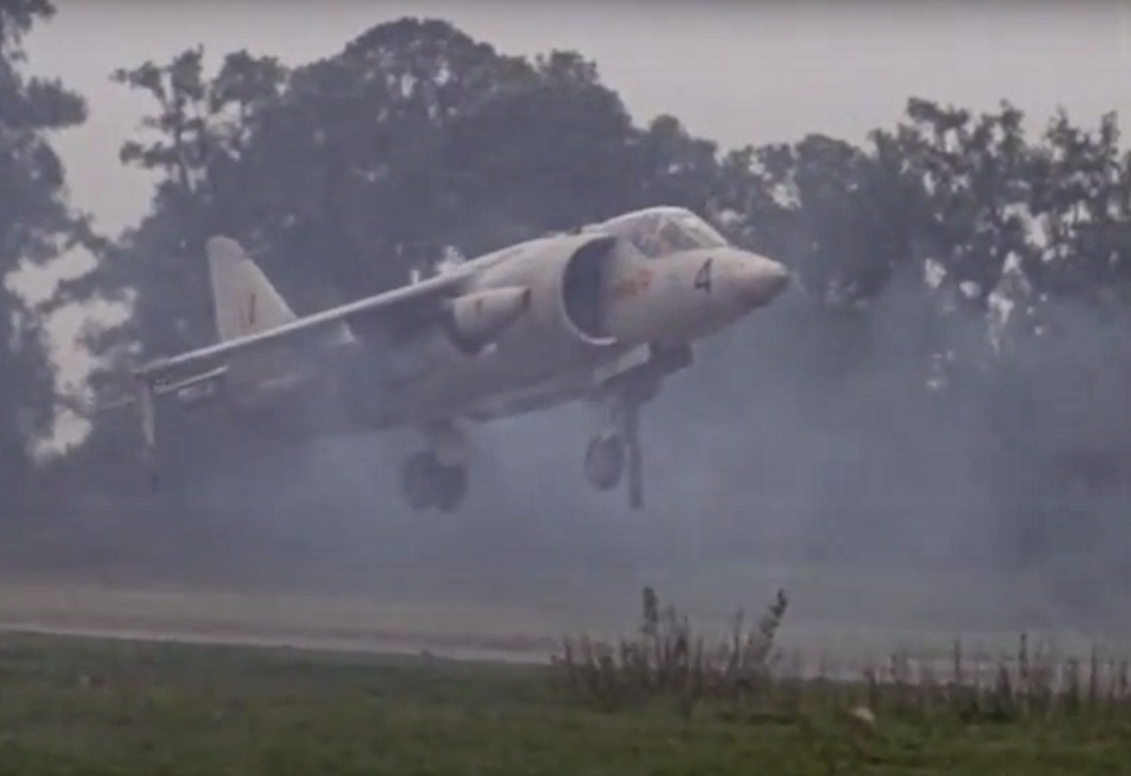 A screen capture from a PR film shot back in 1965 depicting the work of the Kestrel Evaluation Squadron. This is Kestrel XS694 coming in to land off field, before taxiing into a woodland parking spot. (image via Wings Museum)