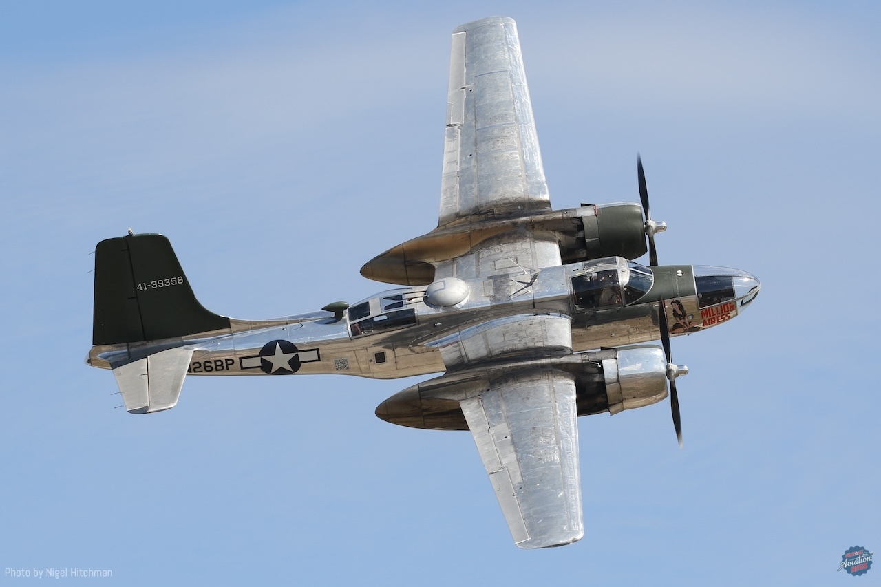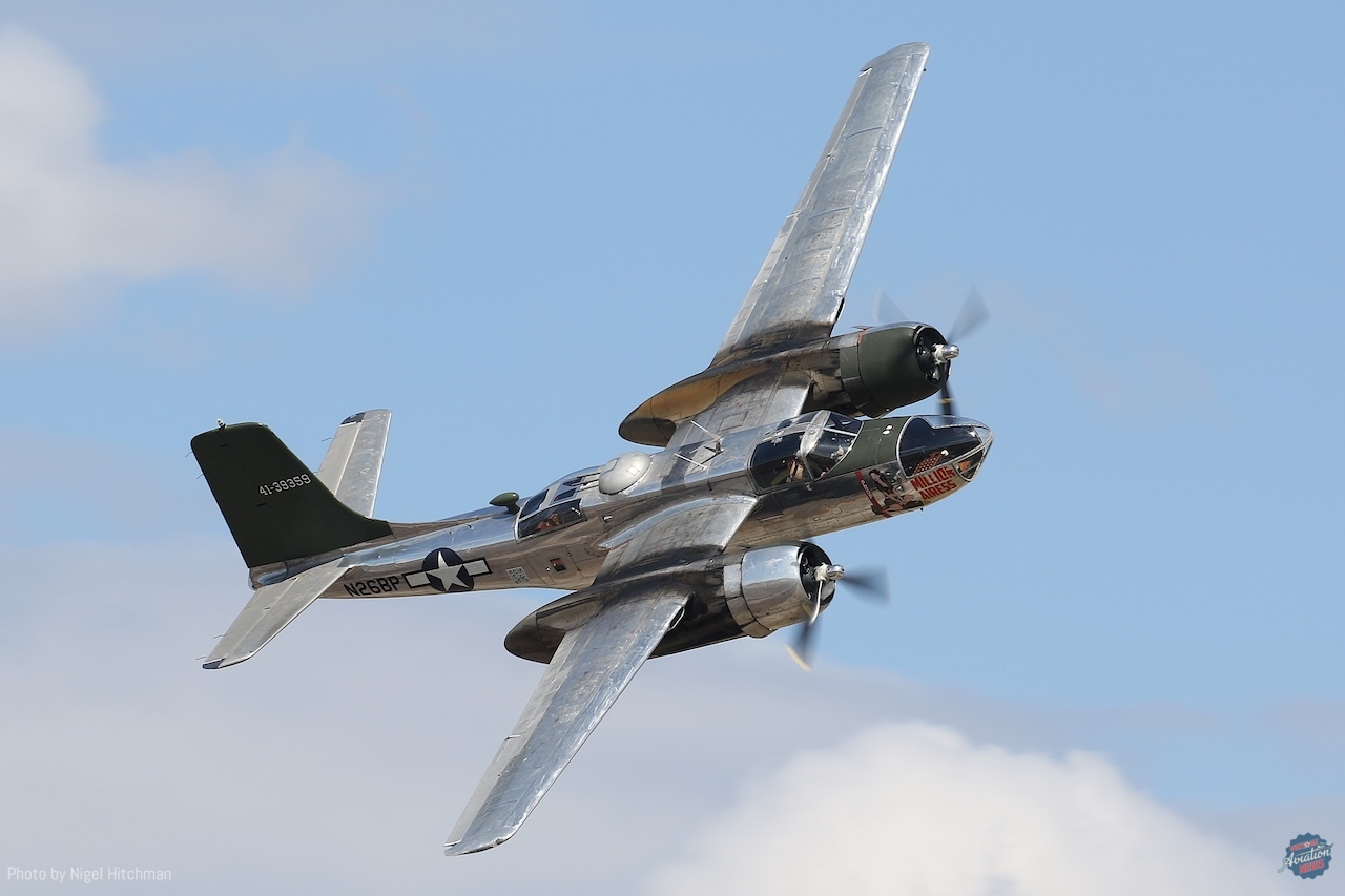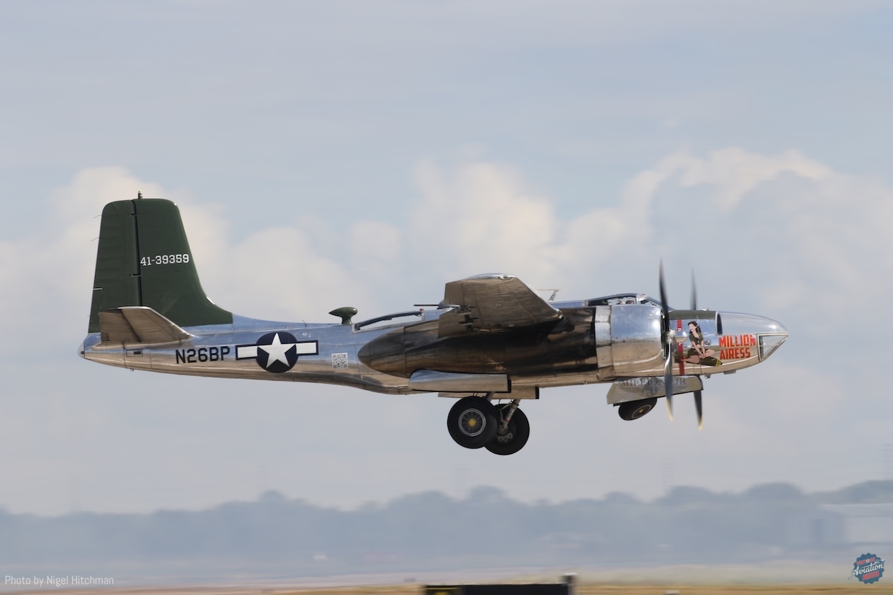 It was good to see two A-26s flying, although not together. Millionairess, A-26C N26BP, gave a great solo display, including several excellent topside passes, and Vintage Flying Museum–based A-26B N260P Night Mission flew in the Vietnam scenario. Funnily, the announcer told us that these were two of only four A-26s airworthy worldwide, but we know there are at least six in the United States and three in Europe, although N167B is currently undergoing overhaul at Meier Motors.