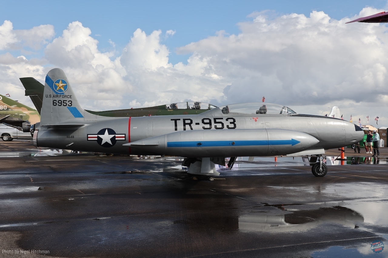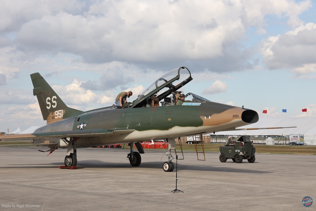 On the Thursday evening before the show, the Collings Foundation’s F-100F Super Sabre N26AZ had an engine run and full systems check and was expected to fly in the show, but unfortunately it didn’t, presumably due to a technical snag. It was on static display along with the F-4 Phantom N749CF, which is currently not flying because the ejection seat certification has expired, a growing problem in the vintage jet world. Hopefully, a solution can be found.