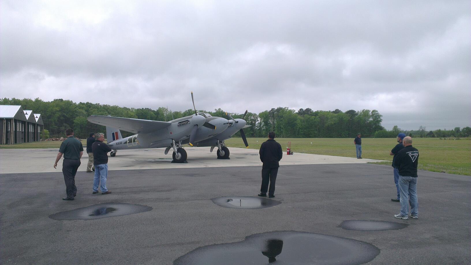 The plane underwent ground testing for FAA inspectors last week, which it passed with flying colors and while the air tests for certification to fly in US airspace was originally scheduled for last Friday, uncooperative weather on that day and over the weekend caused delays in doing the flight certification. This morning the plane took to the air and was put through it’s paces without incident, though it is still awaiting final certification from the FAA which is expected shortly. The public debut for the Mosquito is scheduled for the Military Aviation Museum’s Warbirds Over the Beach Air Show on the 18th and 19th of this month.
