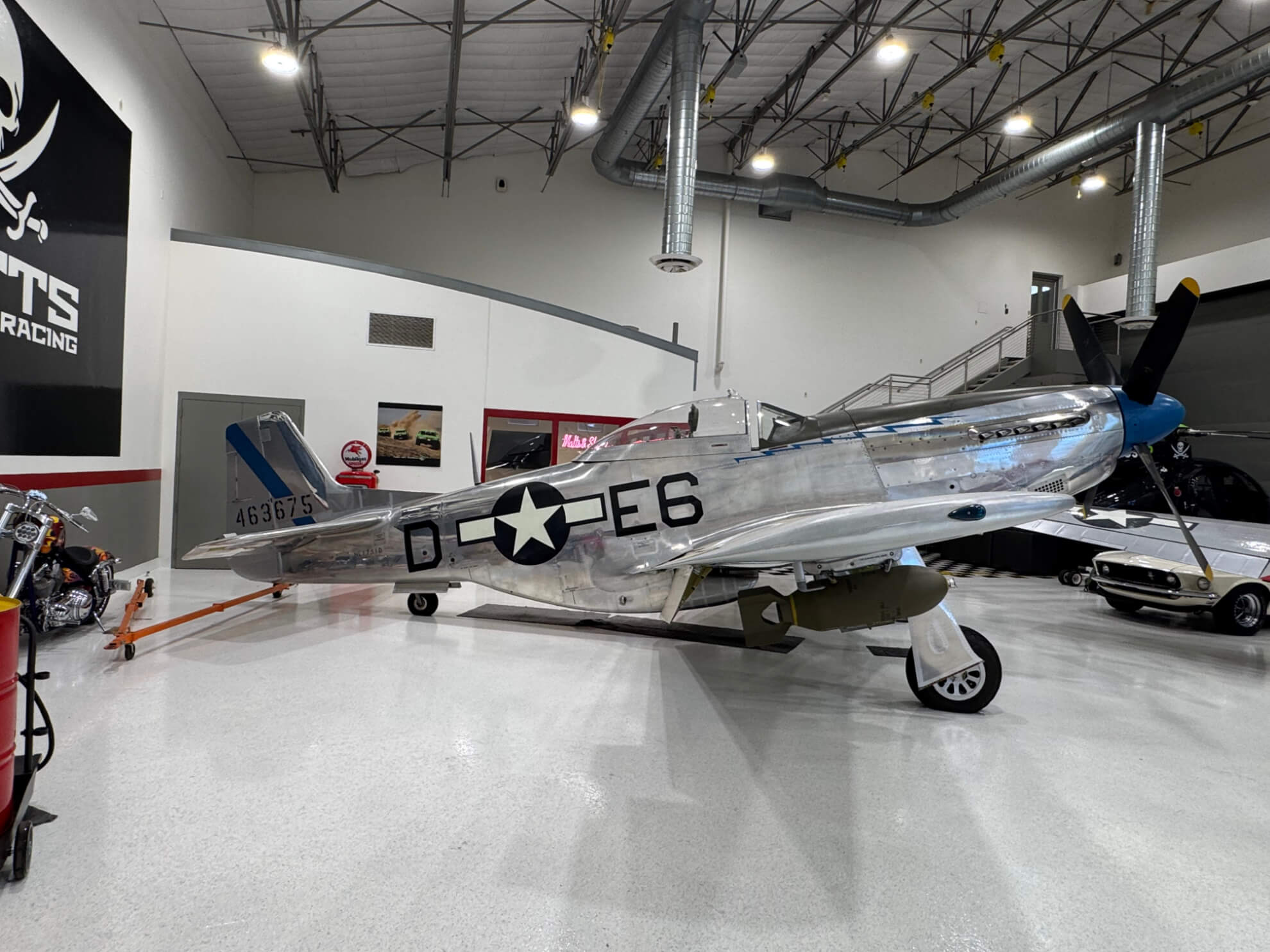 On 30 July 1971, the Nicaraguan Air Force sold GN91 to Dave Allender of San Mateo, California. Registered as N5452V and racing under the number 19, the Mustang received numerous modifications and a bright red paint scheme. On 8 March 1977, it was sold to Roger “Doc” Christgau of Austin, Minnesota. Between 1977 and 1983, Jack Cochrane of Hollister, California fully restored the aircraft to stock Mustang configuration. The FAA registration changed to N1751D in October 1979. In May 1983, the Mustang relocated to Minnesota and was later repainted as Sierra Sue II, featuring wartime markings on the left side and Swedish “Gul Kalle” markings on the right. Christgau owned the aircraft for more than 30 years and became a familiar figure on the airshow circuit throughout the 1980s and 1990s. On 1 July 2011, the aircraft was sold to Paul Ehlen of Hamilton, Montana, who sent it to AirCorps Aviation for a complete, factory-specification restoration. On 17 September 2014, Sierra Sue II made its first post-restoration flight. In May 2015, it joined the Wings of the North collection as a centerpiece of the new museum. The Mustang was purchased by its current owner in January 2024 and is now based in Scottsdale, Arizona.