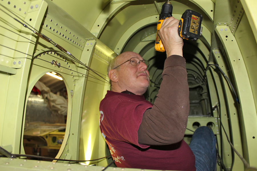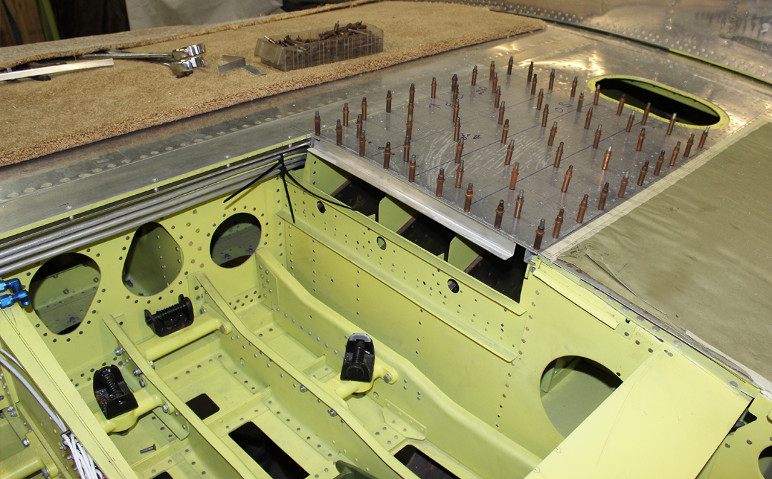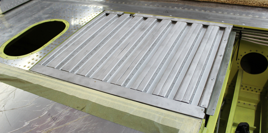 Three team members have been repairing the original doors and pressing new replacement hat channels for the three removable covers that close out the armament section and the left and right ammo bays in the center section. This task should be completed by the middle of February.