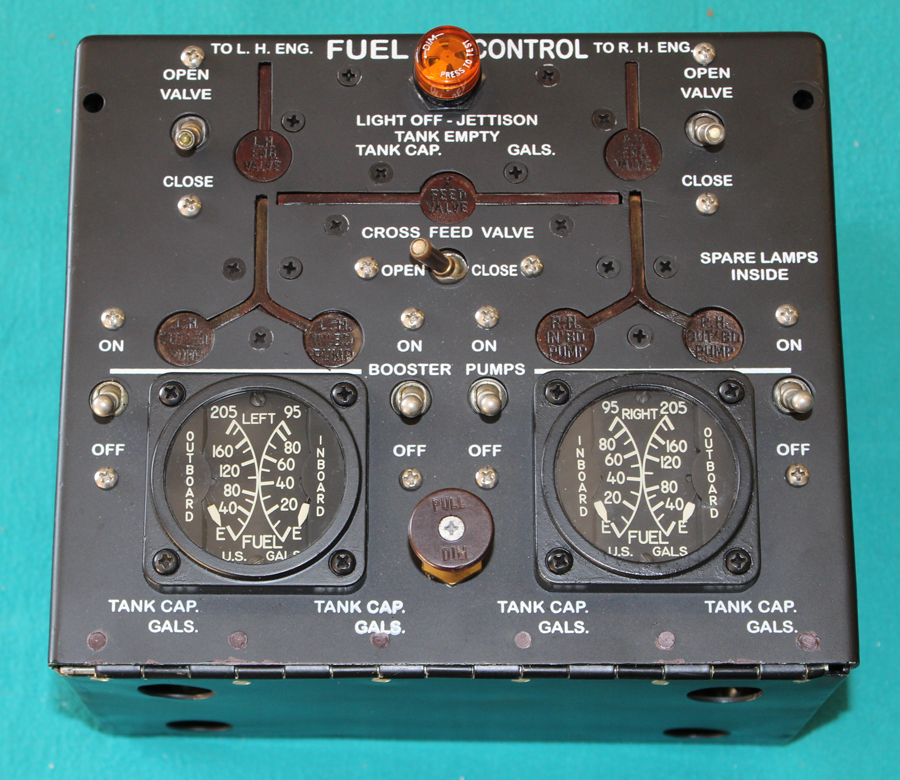 The fuel control box has now had the last of the remaining switches, lights, terminal strips, fuel-quantity gauges, etc. completed. This box will be installed in the left-hand cockpit, below the instrument panel and just between where the pilot’s two knees would be. It is a complex electrical panel which controls the boost pumps, fuel shut-offs, cross-feed valves, and it comes with original, unique, illuminated tracks which light to show the pilot the direction in which the fuel is being routed.