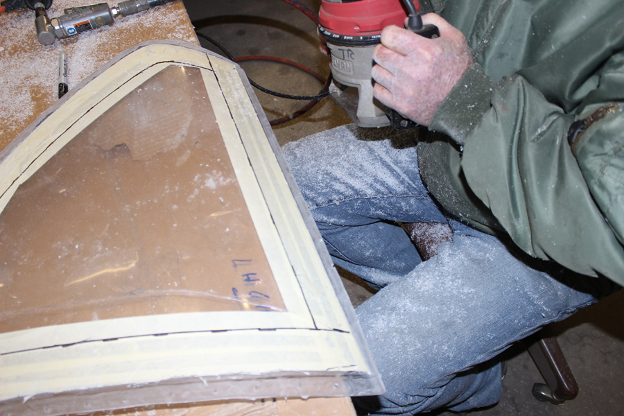 Both windscreens are coming along well. All four side glasses and both center bullet-proof panels are now fitted and edge-routed. Within another two weeks both should be completed, PRC-sealed and awaiting final installation.