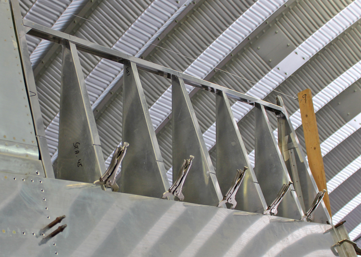 The sheet metal crew has now started manufacturing both outboard flaps from scratch. Reilly had both original flaps from the Alaska wreck site, but not one piece on either flap was usable for anything other than a pattern sadly.