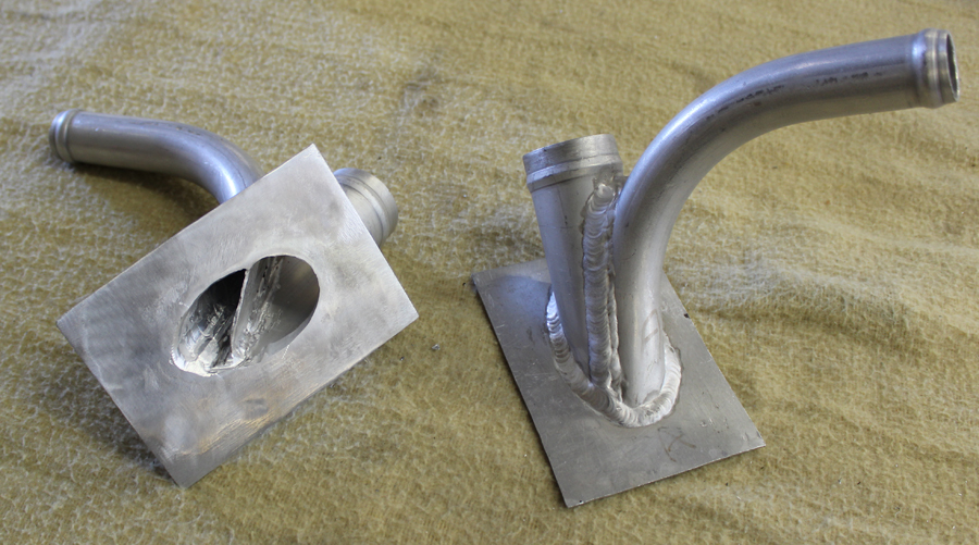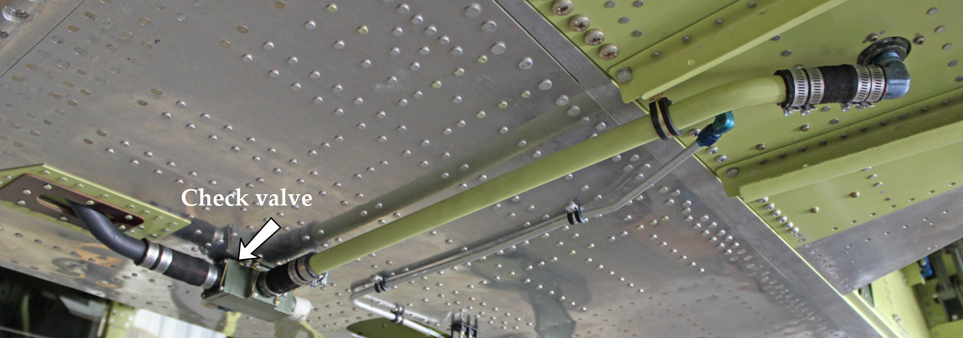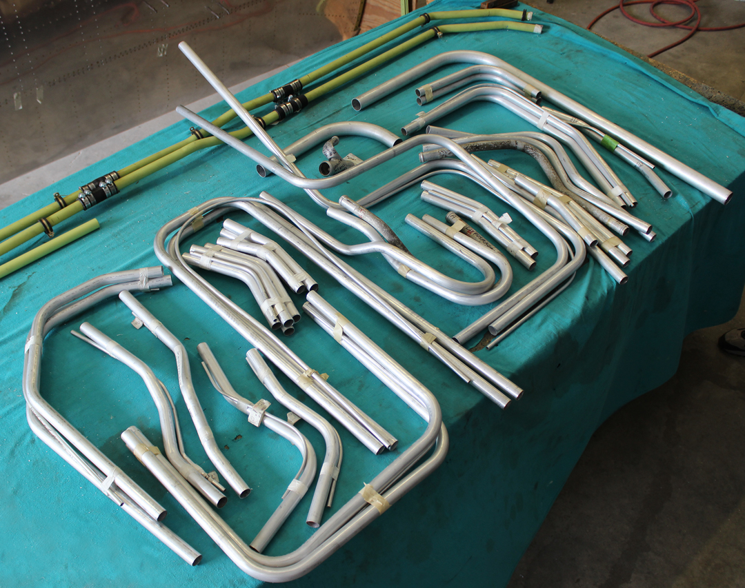 All of the special mandrel-formed fuel feed lines from the tanks to the center section check valves and continuing forward to the fuel shut-offs are now completed and installed.
