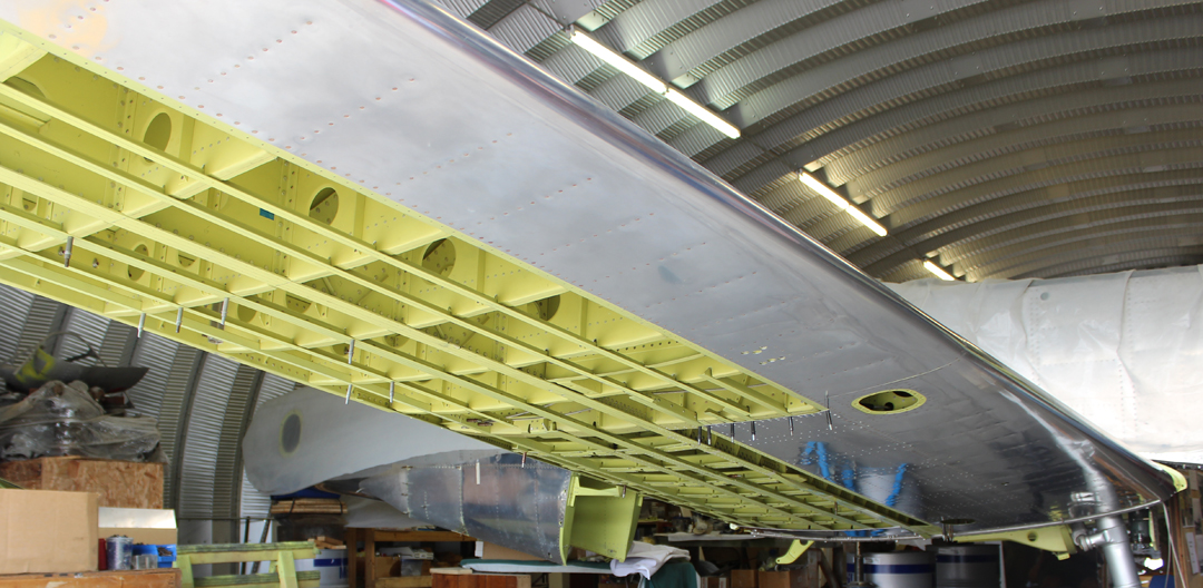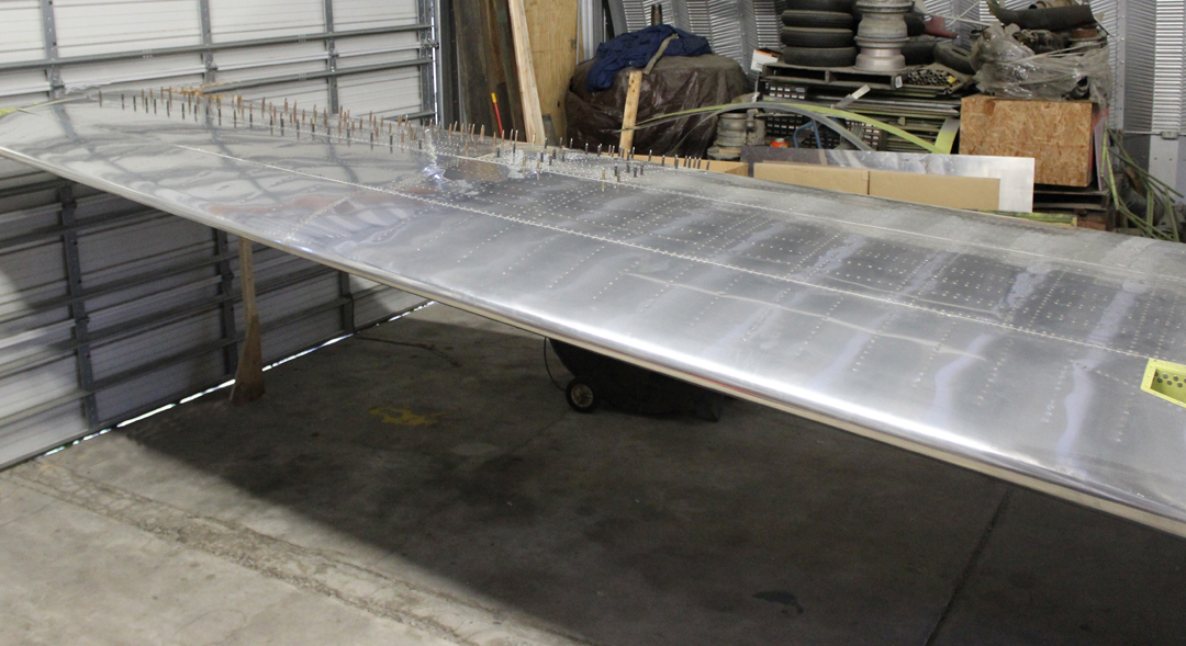 The crew completed the left-hand leading edge and finally riveted it to the forward spar of the left-hand wing.