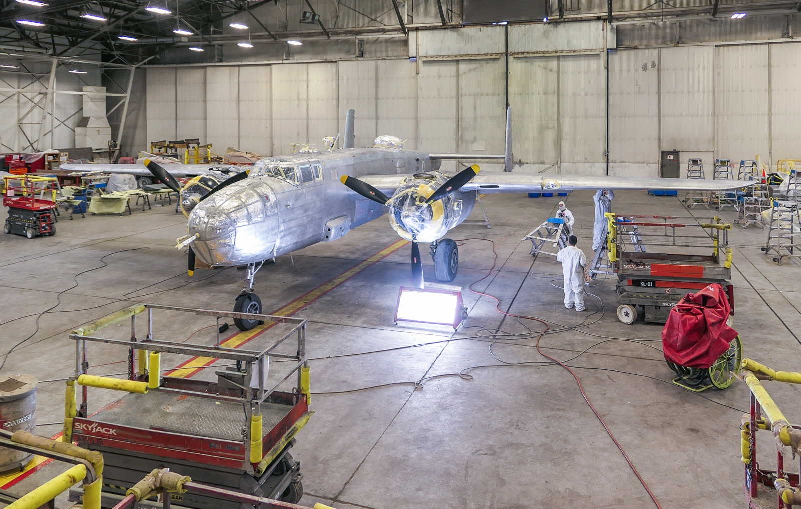 “Kalitta Air and Kalitta Maintenance are making a fantastic contribution to aviation history,” exclaimed Kevin Walsh, President and CEO of Yankee Air Museum. “For years, our B-25 has flown in its polished, natural aluminum skin, bearing the name Yankee Warrior. It is beautiful, but inaccurate and does not honor its past. We are very excited to see this World War Two aircraft restored to its original markings.”