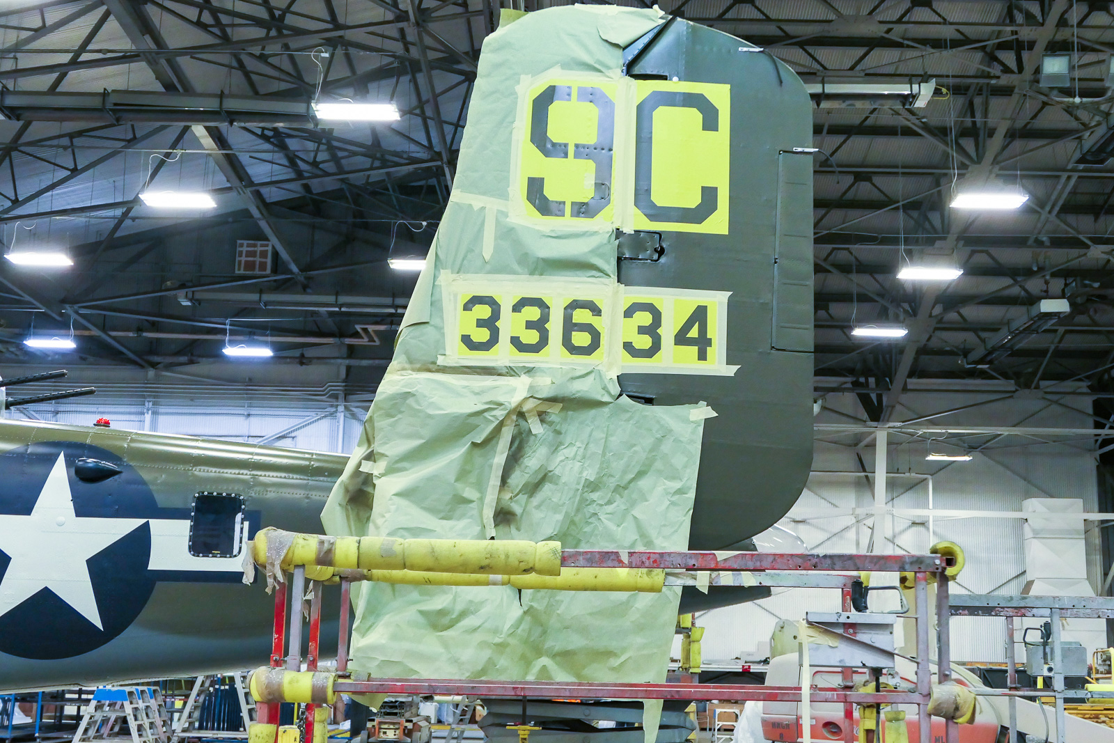 “It looks fantastic,” said Kevin Walsh, President, and CEO of Yankee Air Museum. “I am very anxious to see it outdoors, in natural light. The Kalitta Air team has delivered a remarkable, authentic paint job and just like in World War Two, some of the last official paint to go on the plane are the ‘9C’ squadron identification markings on the tail,” said Walsh.